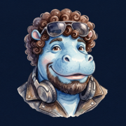 A blue hippo with curly hair, headphones, and a leather jacket — navigating real life one comic panel at a time.